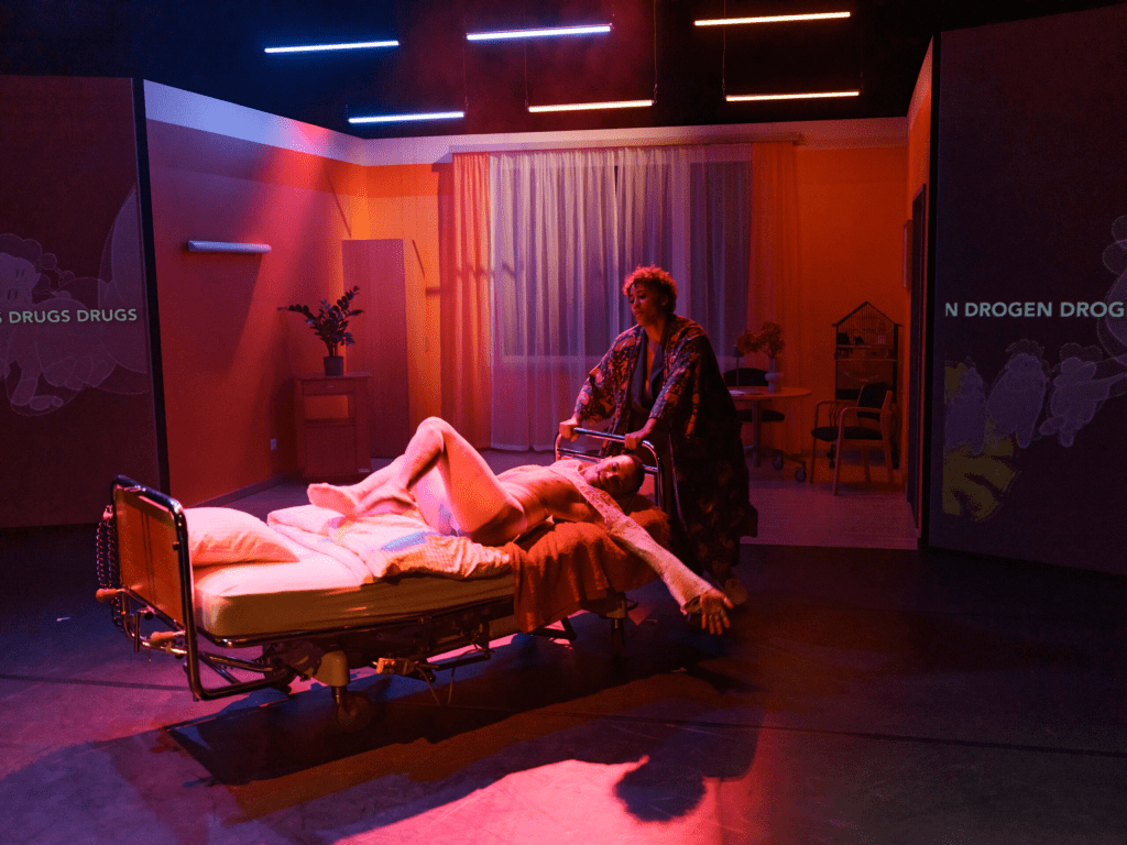 Mitosis, comédie musicale, contemporaine et voluptueuse, conçue par la chanteuse et performeuse américaine et zurichoise Brandy Butler, mêle musique, science et introspection pour repenser la fin de vie. L’histoire pourrait être celle d’un·e proche ou d’un·e inconnu·e, une vie bouleversée par un diagnostic médical fatal. Elle raconte la trahison du corps, l’objectivation biomédicale et la lutte entre vivre et lâcher prise. En parallèle, une substance autrefois interdite refait surface : le LSD, qui semble apaiser la peur de mourir.